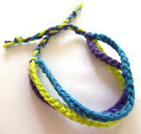 | BRAZALETE DE LA TRINIDAD: Para ayudar a los niños recordar que la Trinidad es 3 en 1, pídales que hagan un brazalete que tenga tres hilos o hebras. Hay varias manera de hacer esto y pueden utilizarse varias clases de materiales. Pueden usar lo que tengan disponible - lana, cintas, tiras de piel, elástico, etc. Ate los tres pedazos al principio entonces, si tienen cuentas o amuletos utilícelos para decorar las hilos y atarlos al final. Luego unan las dos partes o pónganle algún tipo de cierre. Si tienen chicos más grandes, ellos pueden hacer trenzas en lugar de lo anterior. Hay diversas formas de hacerlo...