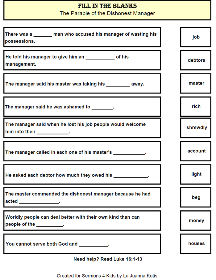 Parable Dishonest Manager Fill In The